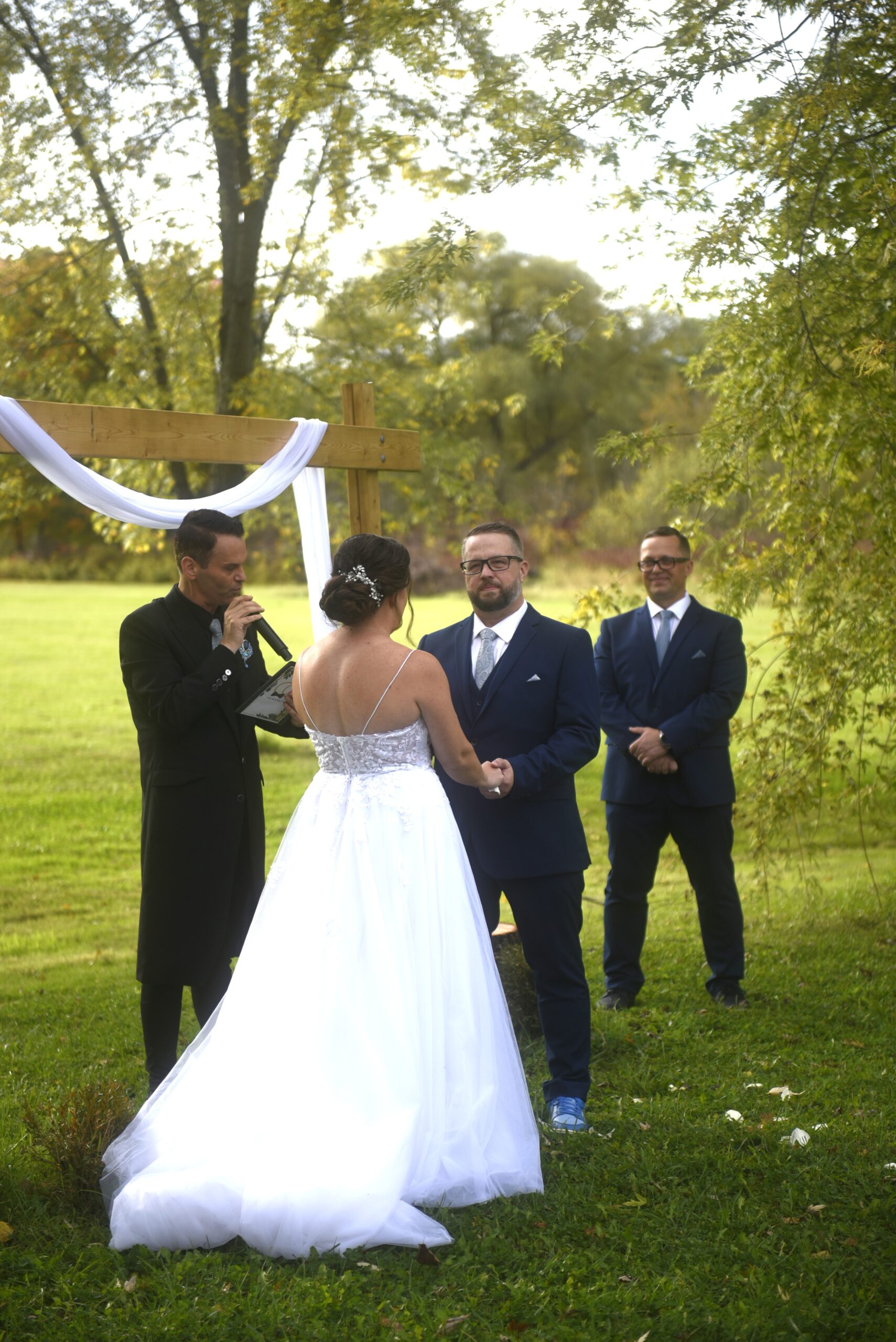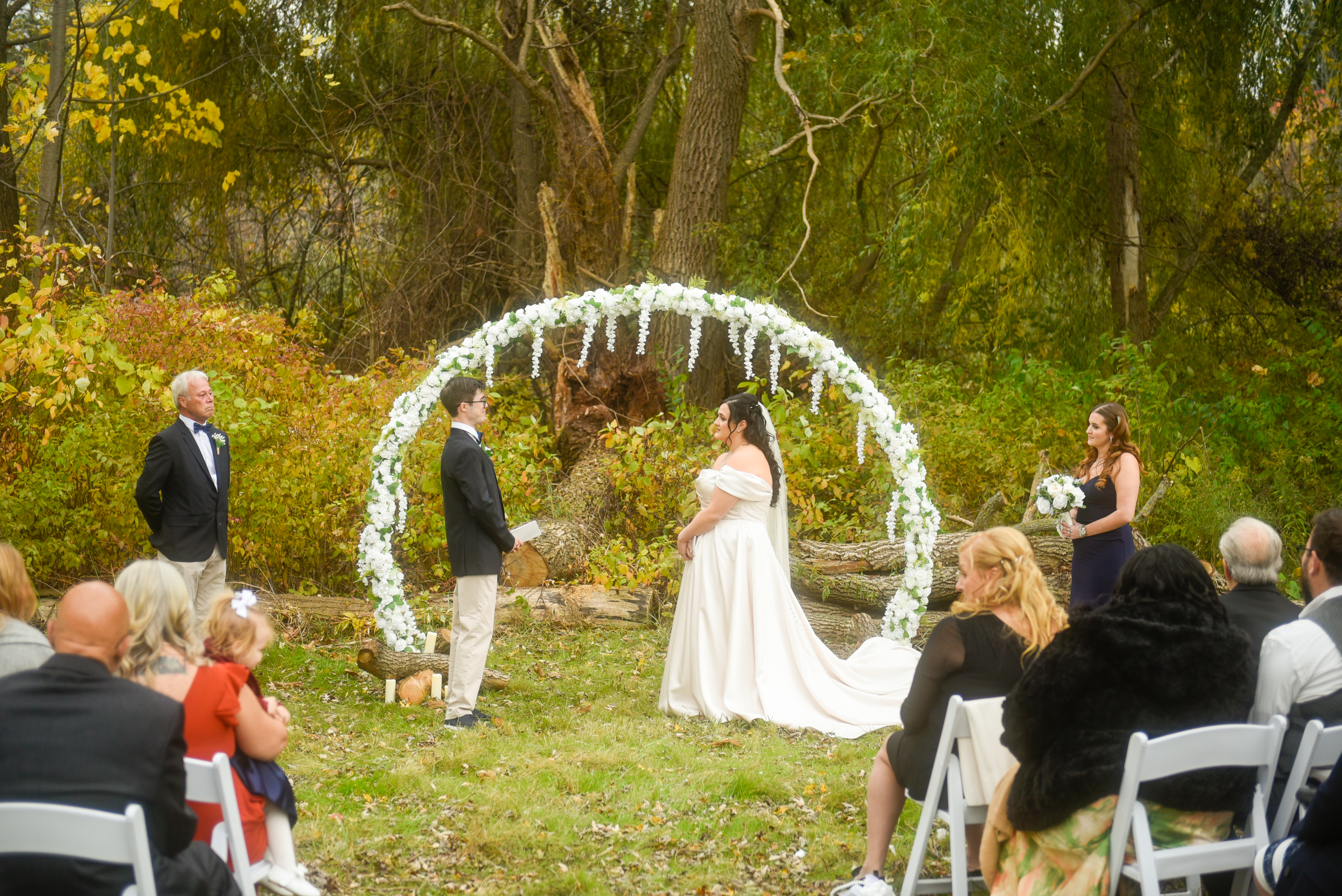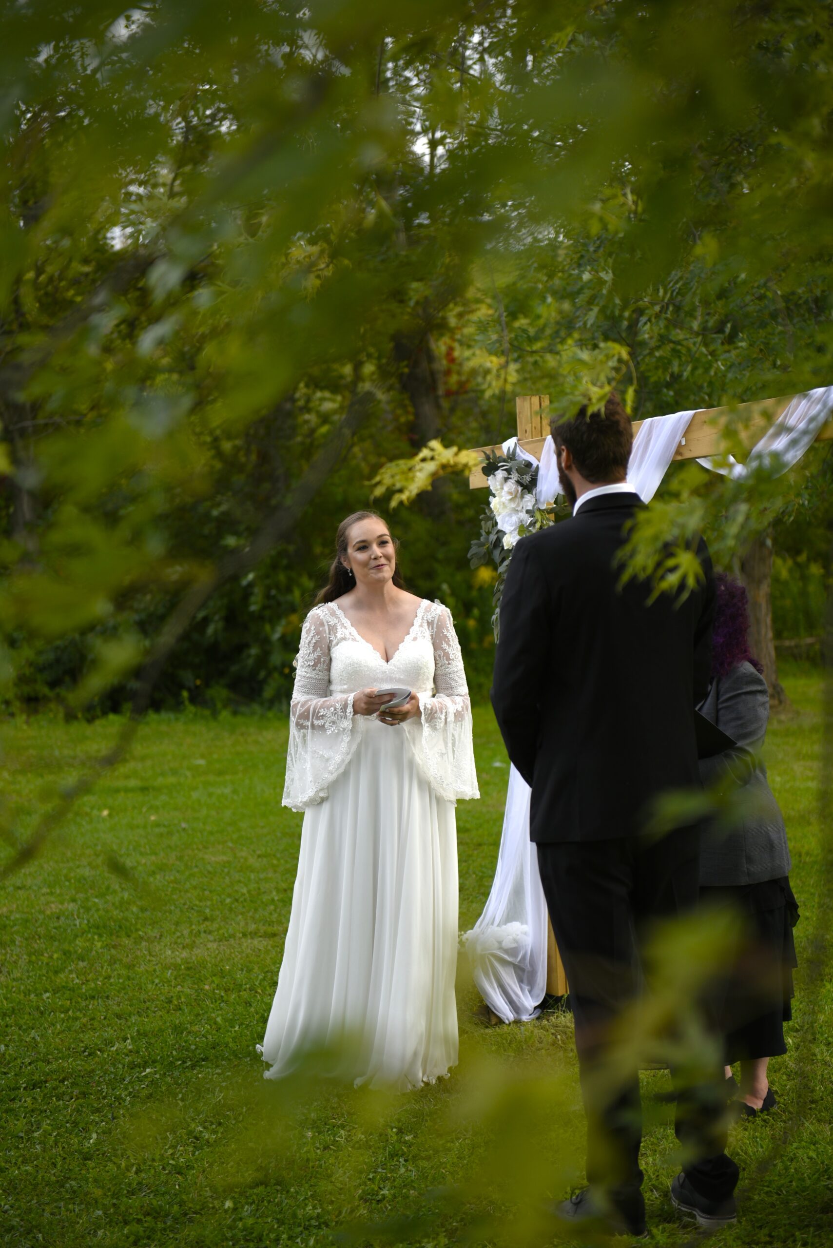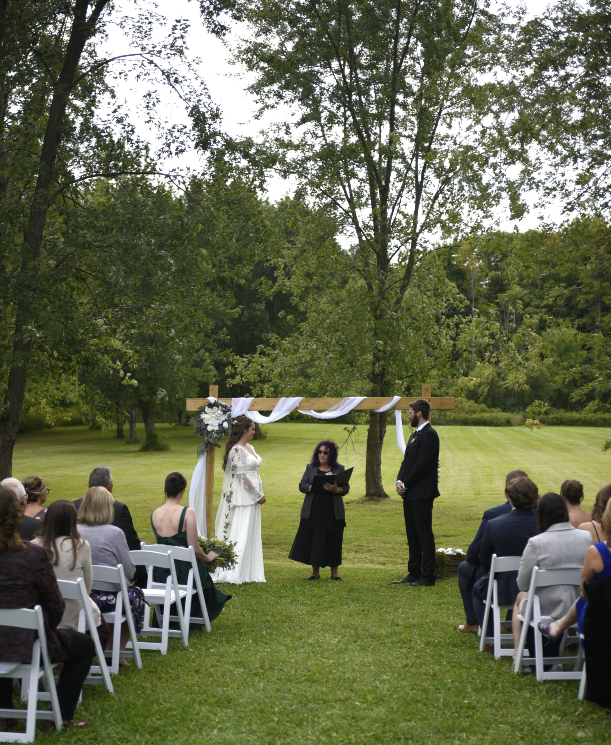 - an outdoor ceremony site with a decorated wood arbour (May to October)